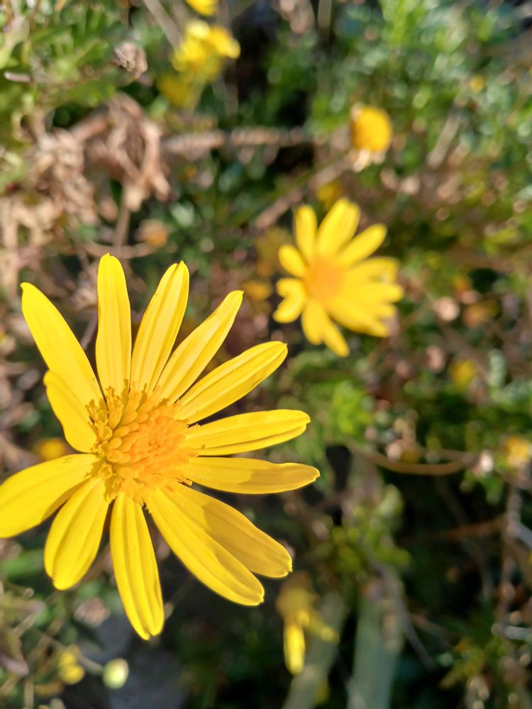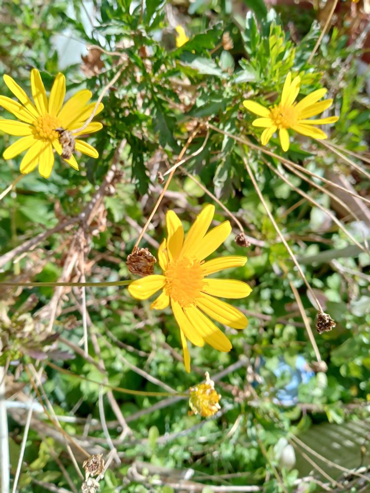 わが家の庭でユリオプスデージーが元気いっぱい咲いてます。💛💛💛💛