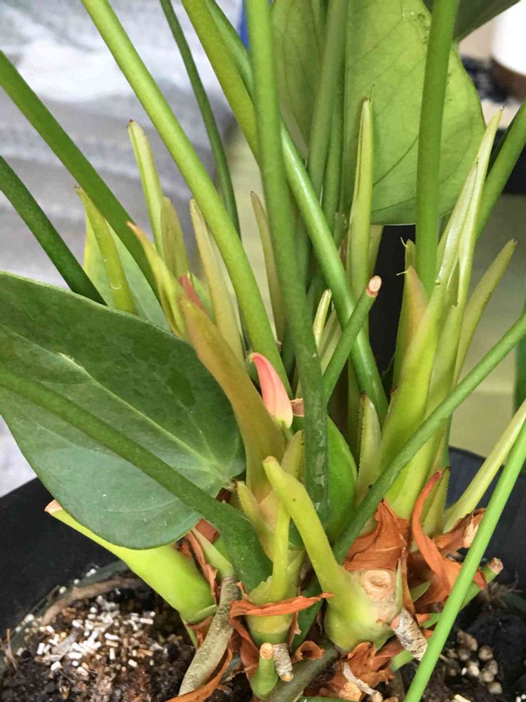 暑い中、久々こんにちは😃のアンスリウムパンドラの花芽が出て来ました😊