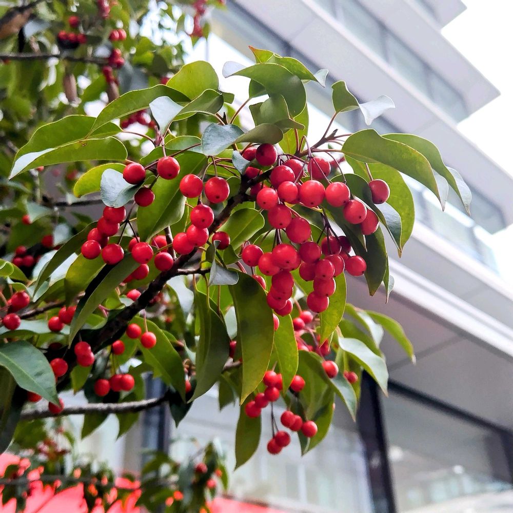 会社近くの郵便局の植え込みのソヨゴがたくさんの赤い実を付けています🔴
