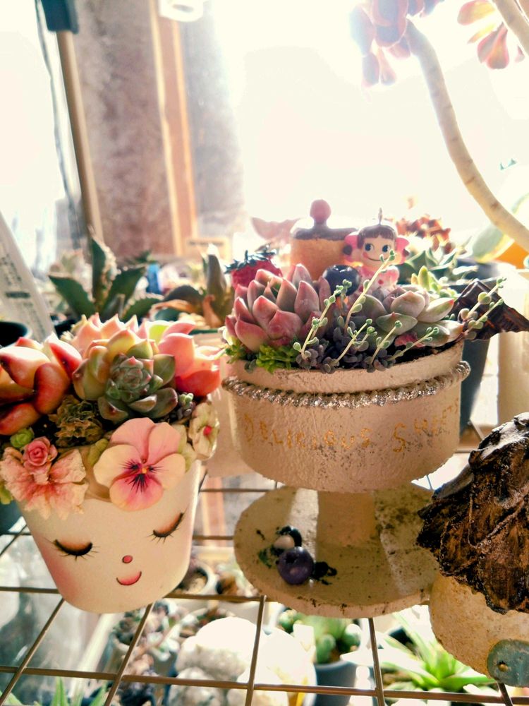 他にもネイルのグリッターを塗り塗りした鉢も有ります💃