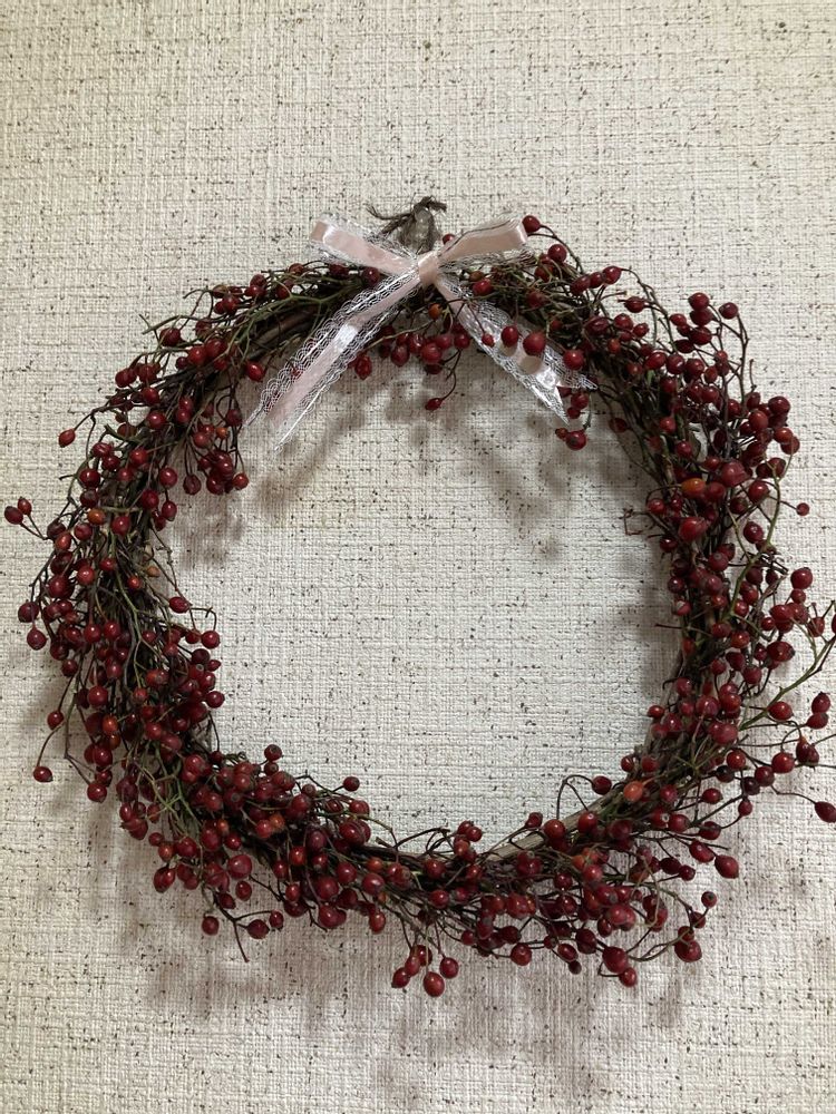 ③ 川べりの散歩🚶♀️🚶で野薔薇の実を摘んでリースを作りました❤️