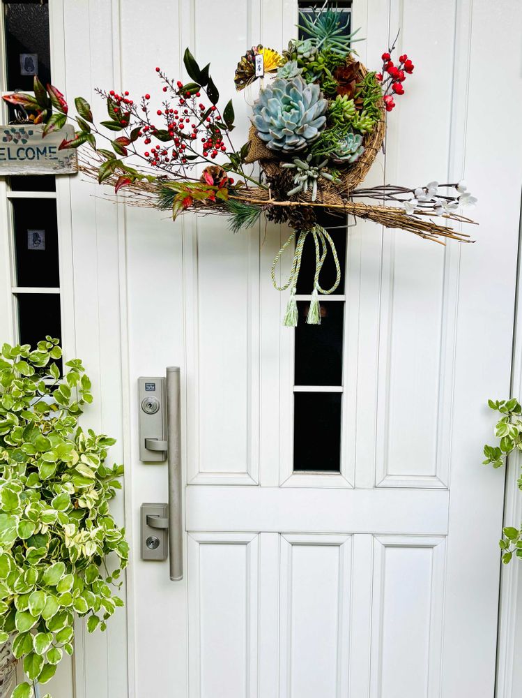白いドアに和洋を取り入れたリースが素敵ですね♡♡