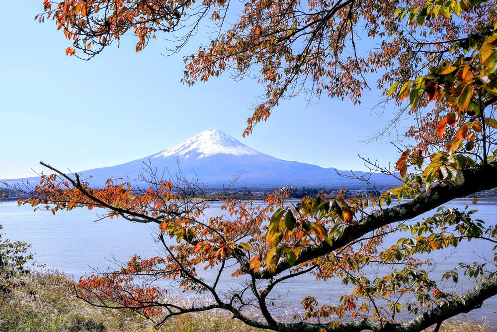 紅葉した桜の木に包まれた富士山でとても素敵でした。