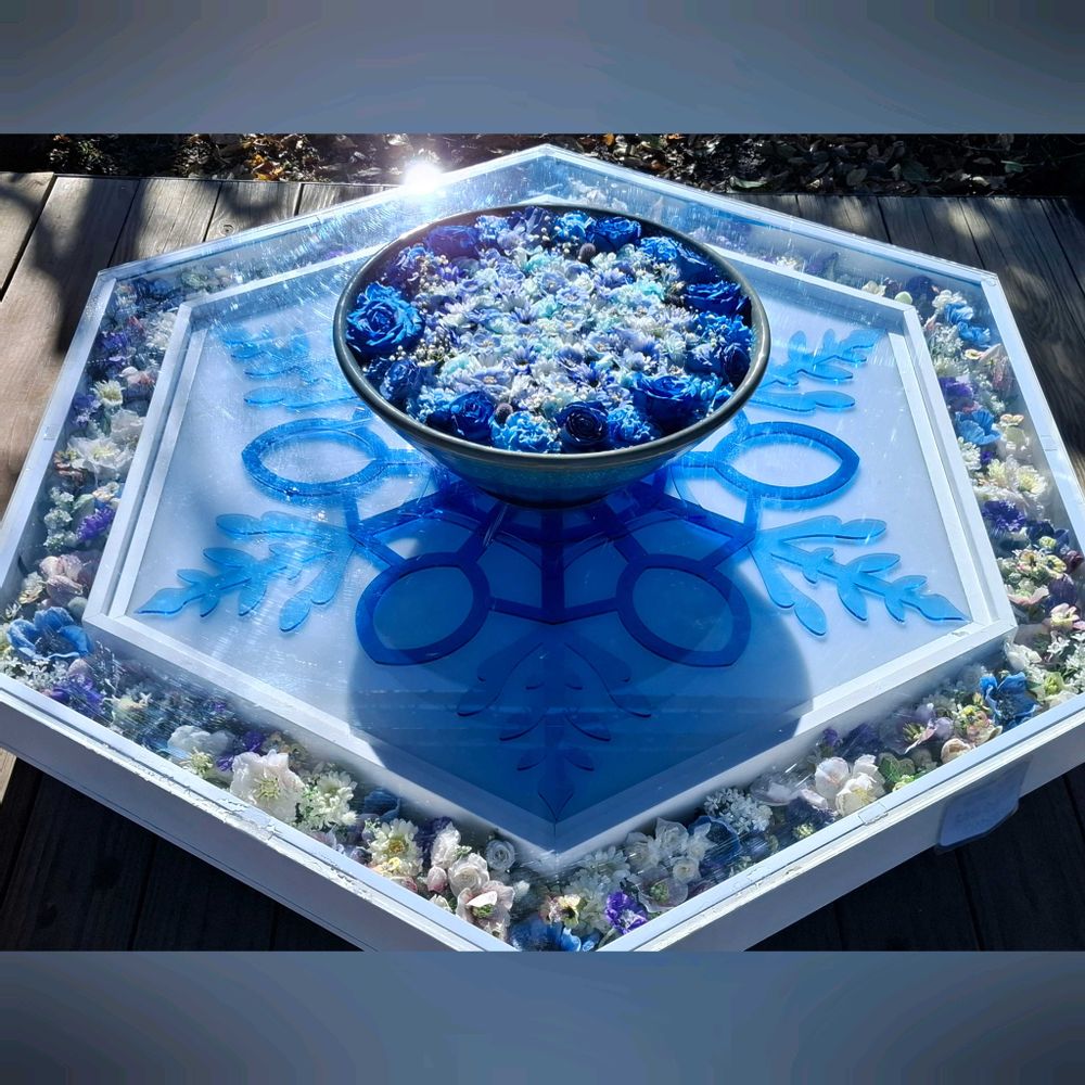 青い💙🩵💙🩵💙🩵花手水、なんて神秘的なんだろう😍
