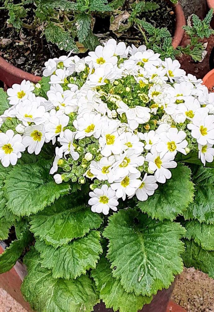 最近 色物が多いなか真っ白な【プリムラマラコイデス】の花🌸