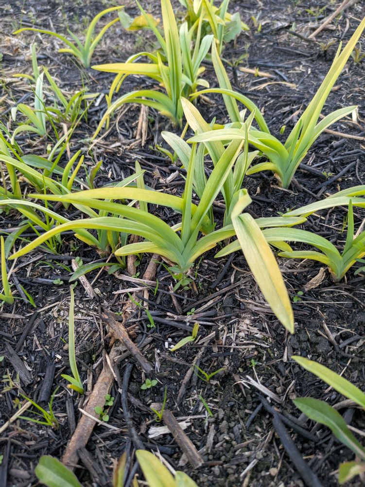 この時期にノカンゾウが群生して芽吹いてました…ビックリしてます!