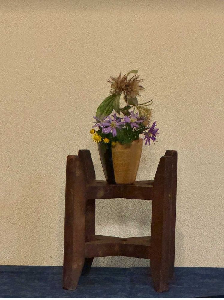 ぐい呑みの大きさにちょうど良い花台になりました。野の花がよくあってくれました。