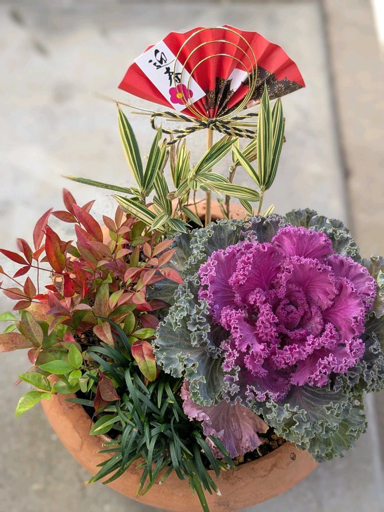 産直で小さなポットのお正月用の苗があったので…寄せ植えにしてみました。