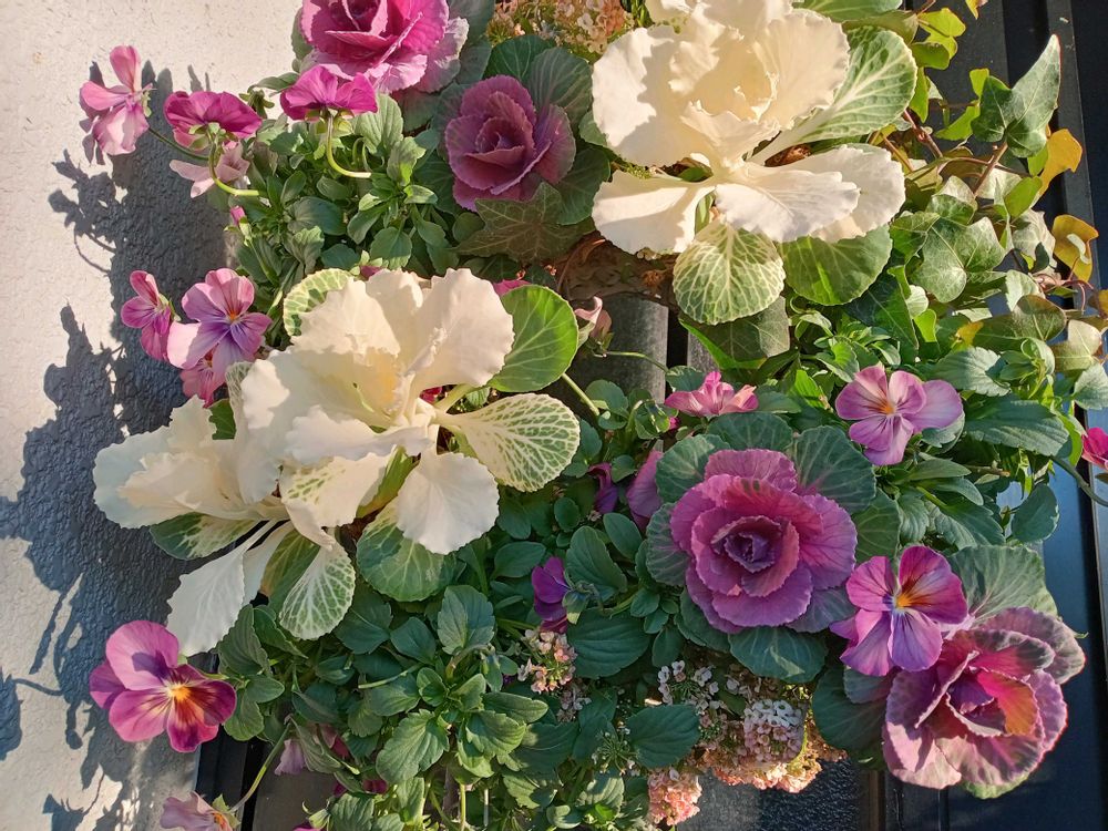 葉牡丹もビオラも可愛くて。放ったらかしでいいから、これは飾って正解かも✨