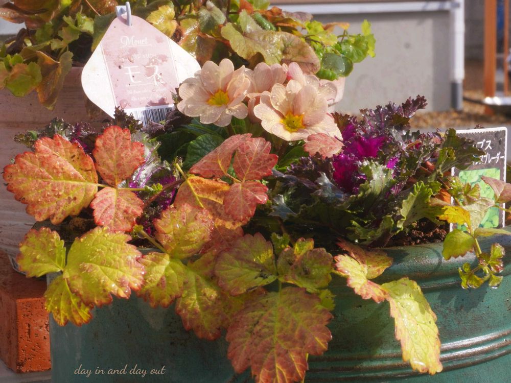 園芸店で購入した葉牡丹とジュリアンとルブス サンシャインスプレーダーという難しい名前のカラーリーフと寄せ植え🪴