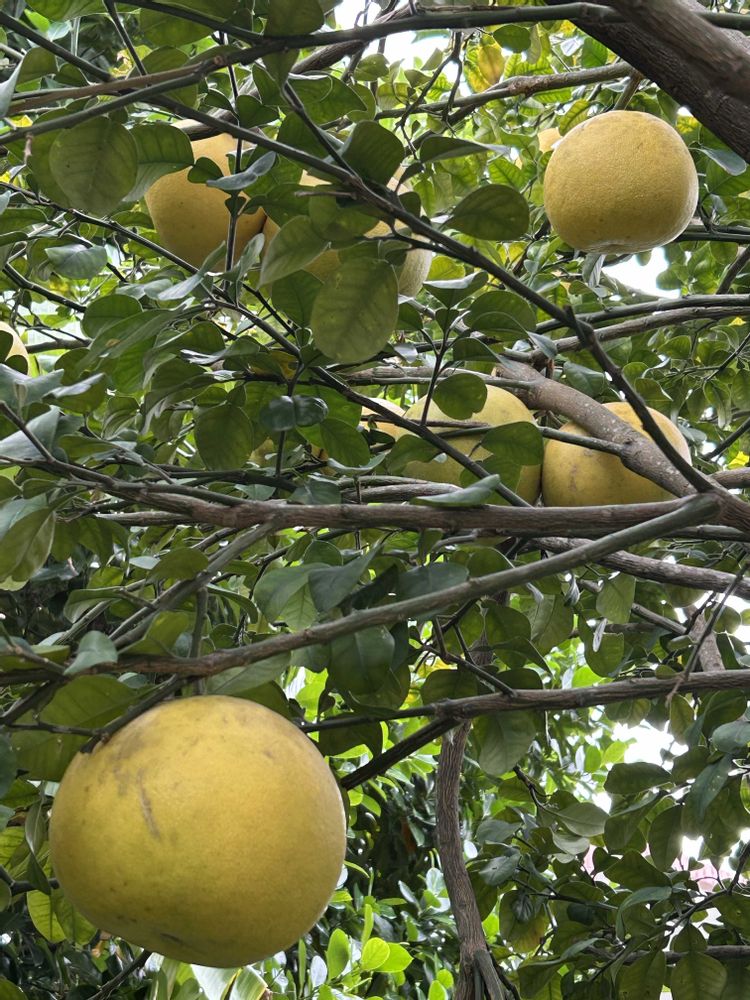 実家の庭にて,太陽の下で育った沖縄果実,ザボンの実の投稿画像