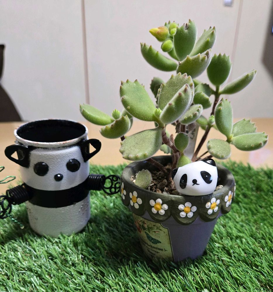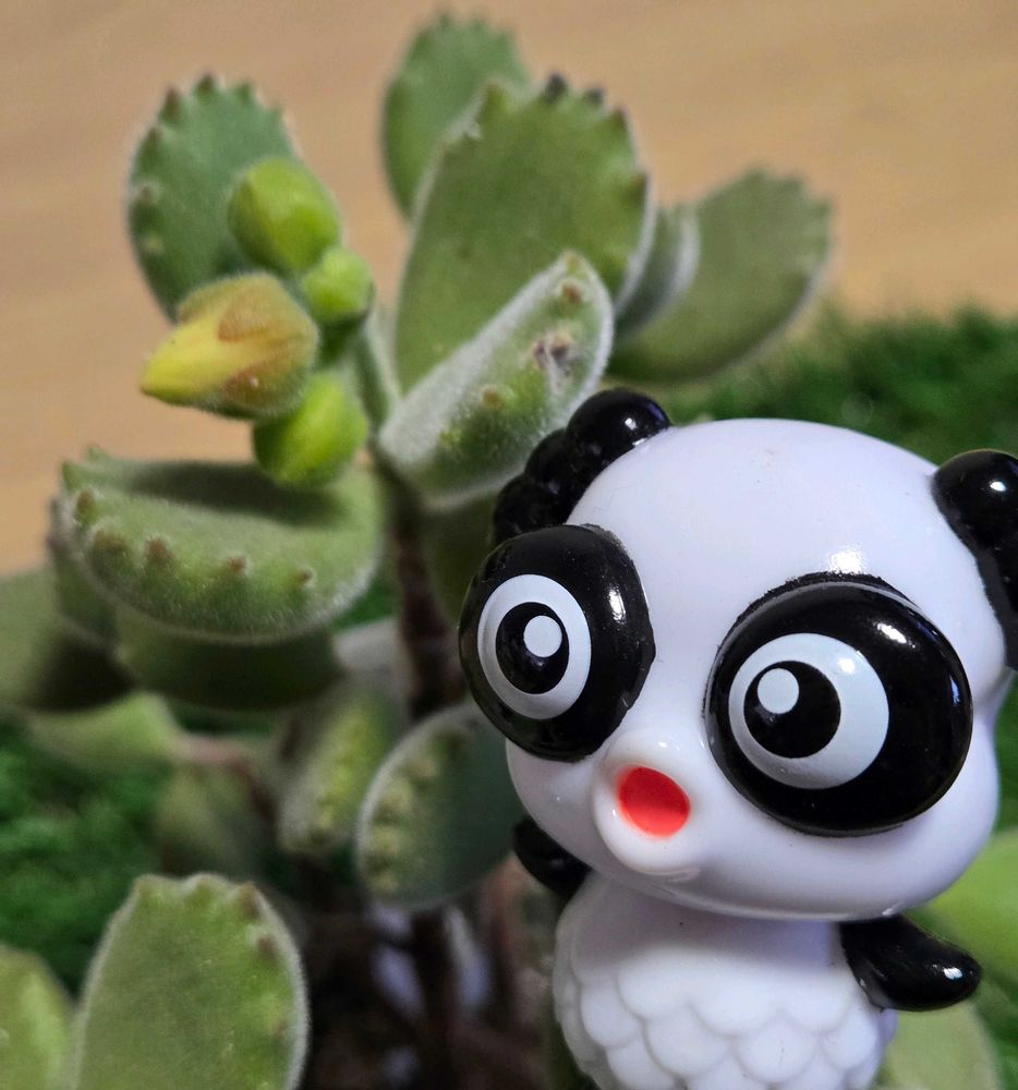 熊童子さんのお花に、びっくりしてる、パンダちゃんが可愛い🤩