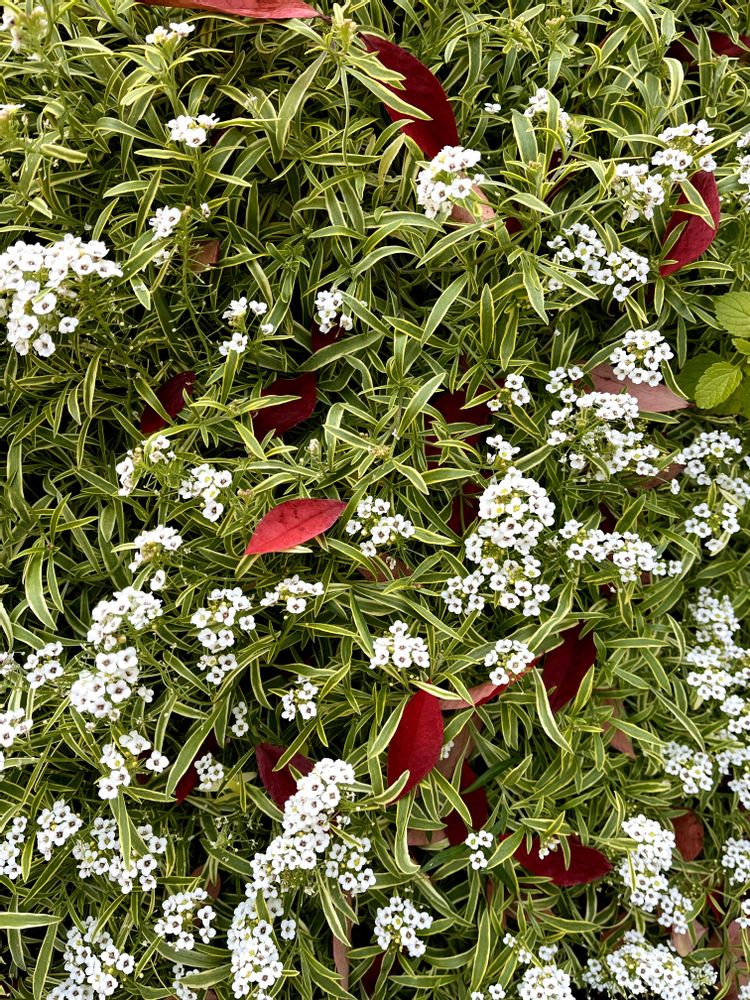 ふんわり咲いたアリッサムに落ちたブルーベリーの紅葉、とってもキレイです🍂✨
