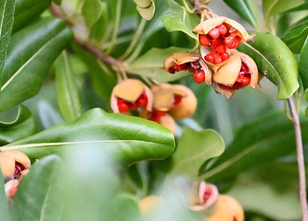 やがて3裂し赤い粘り気のある種子が多数出てきます♥️
