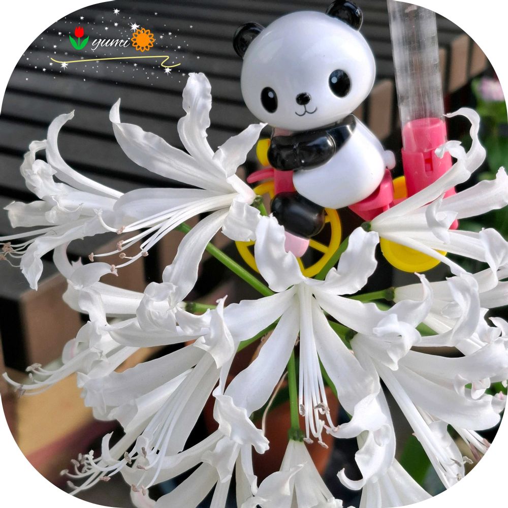 パンダの白黒とネリネの色が(*,,˃ ᵕ ˂ ) イイネ♡