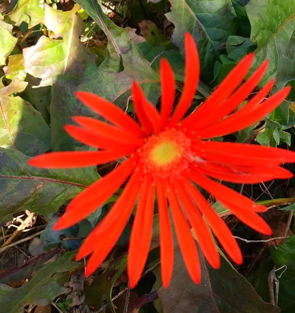 冬日の畑で宿根ガーベラさんが紅一点頑張ってくれていますヨ~👍️ 元気をありがとう😃