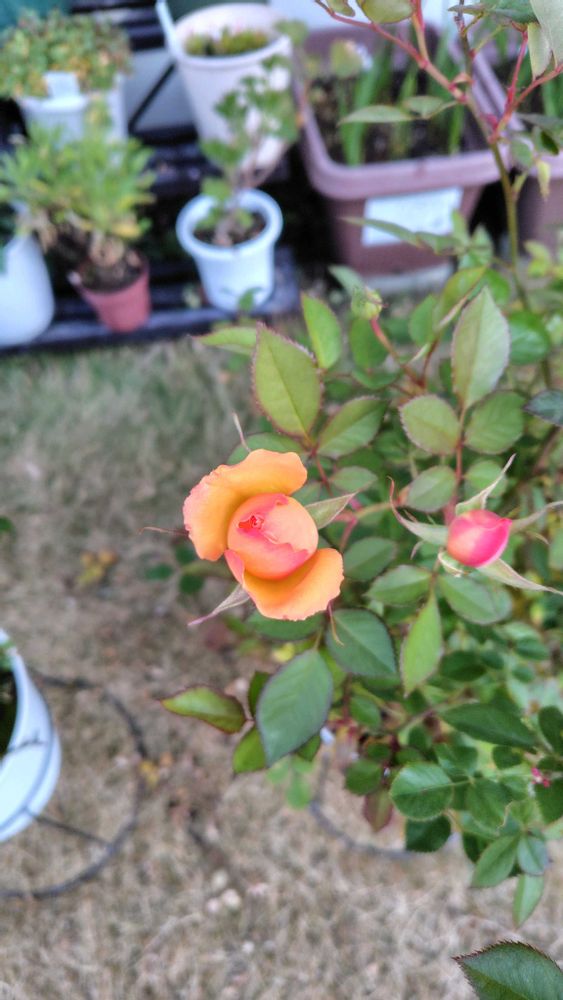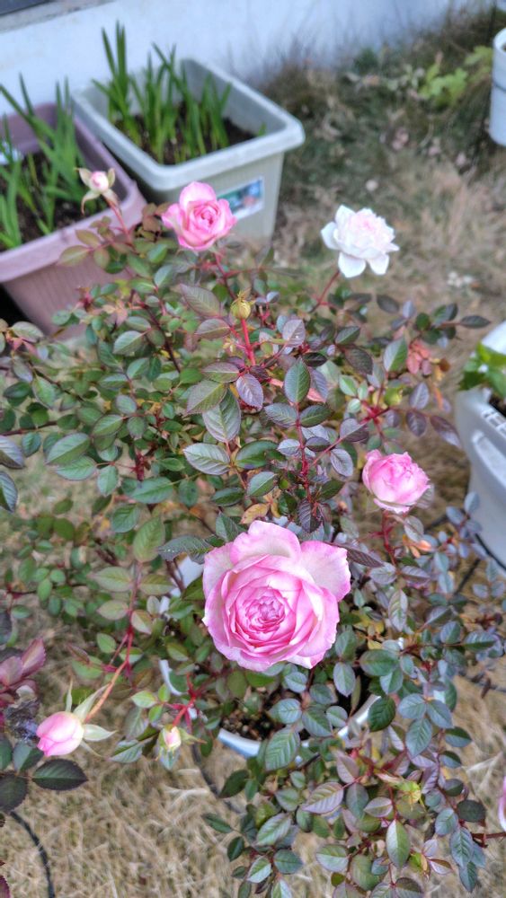 うちのミニバラシスターズ、四つありまして、最後の一つがやっとお花が開いてきてくれました🌼