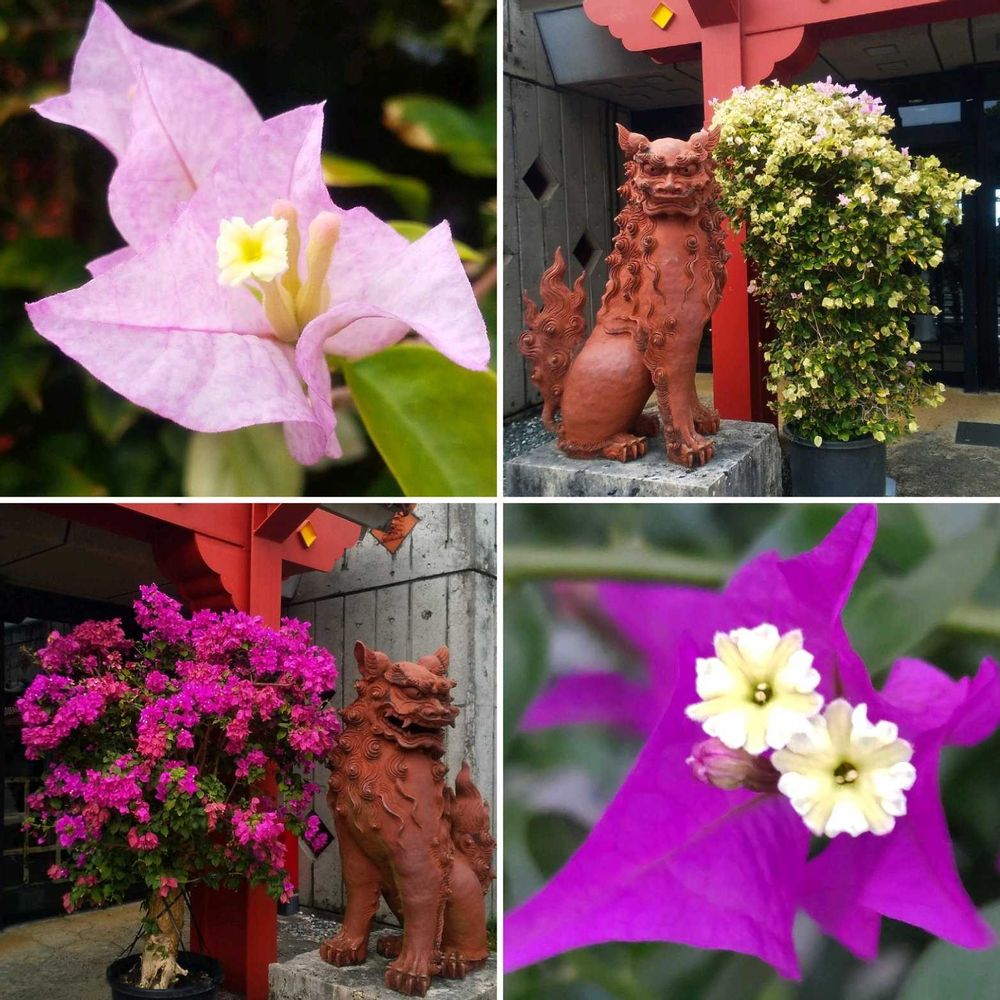 ①首里杜館の前のシーサーとブーゲンビリア🩷