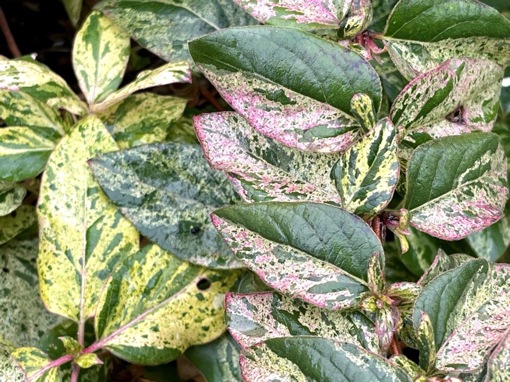 3️⃣『ロニセラ ミントクリスプ』黄色の斑入り葉ですが、寒くなるとピンクが出てきます🌿💗💛💚