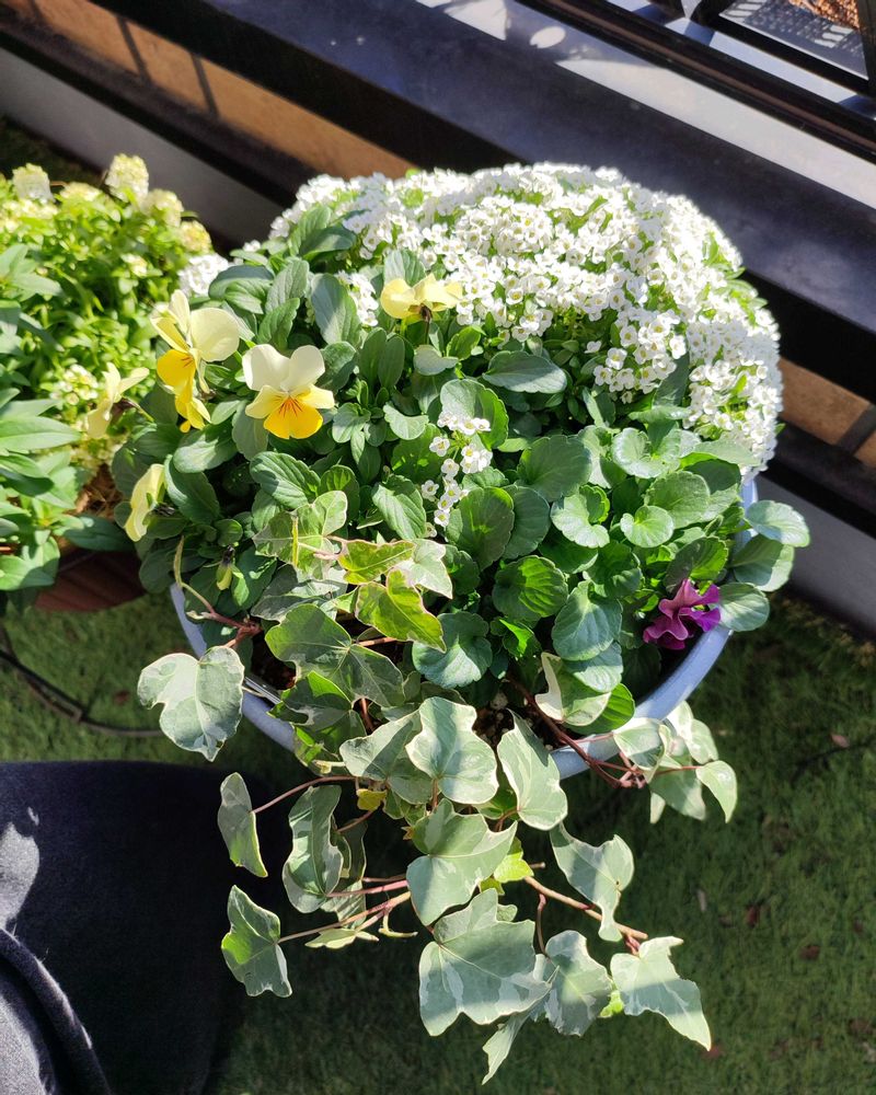 ビオラは寒くなると皆🟣になりがちなので、今年は🟡系選んだんやけど…