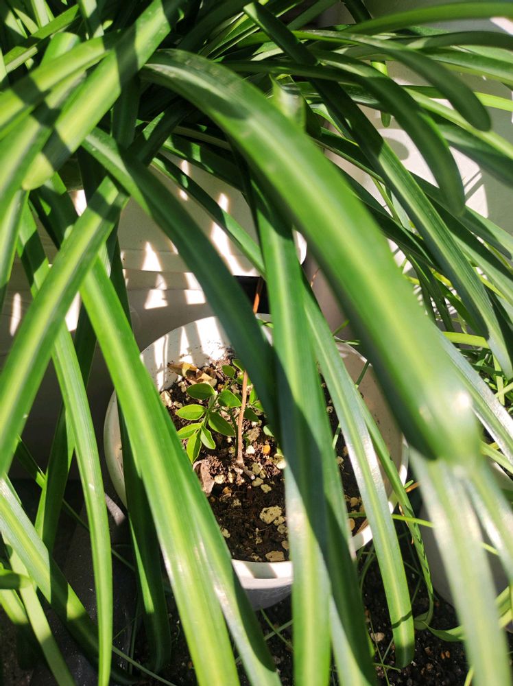 彼岸花の葉の奥にはジャスミンの挿し木🌿.∘
