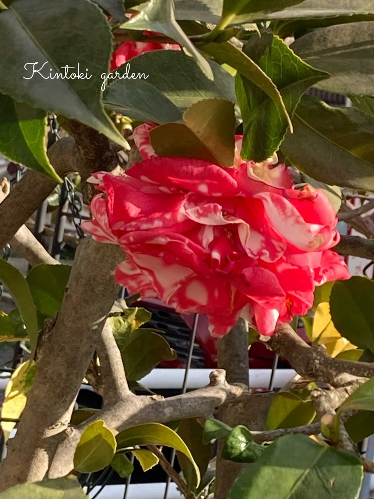 母が植えた大好きだったツバキ太神楽今年も花を沢山付けたよ。