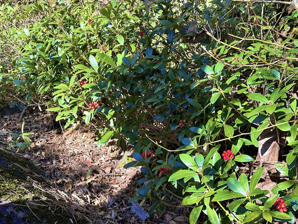 ⑤山と呼んでるけどちょっとした丘だけど、どういうわけかここはミヤマシキミに覆われてます😊