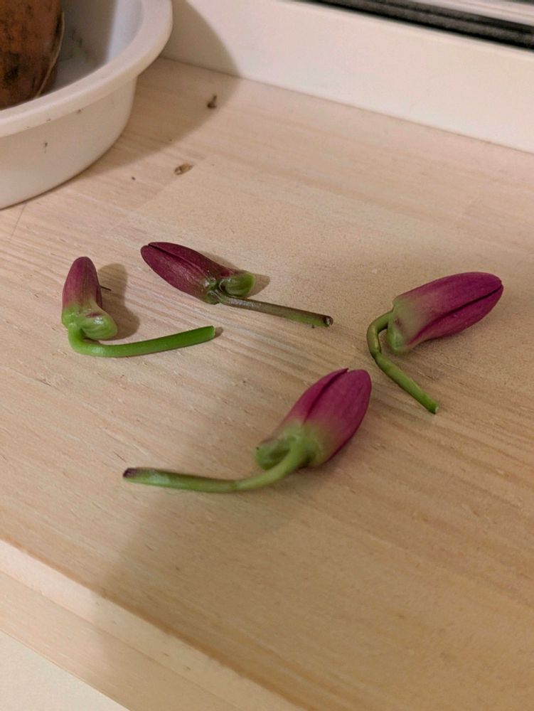昨夜夜中にトイレに起きたあとミイがトイレの前にいて扉をキチンと閉めれなかった。そのあとなんか落ちたような音が聞こえた…朝トイレ開けたら床に転がっていた😱花に興味持つのはミイしかいない😓まさかのニャン災😂