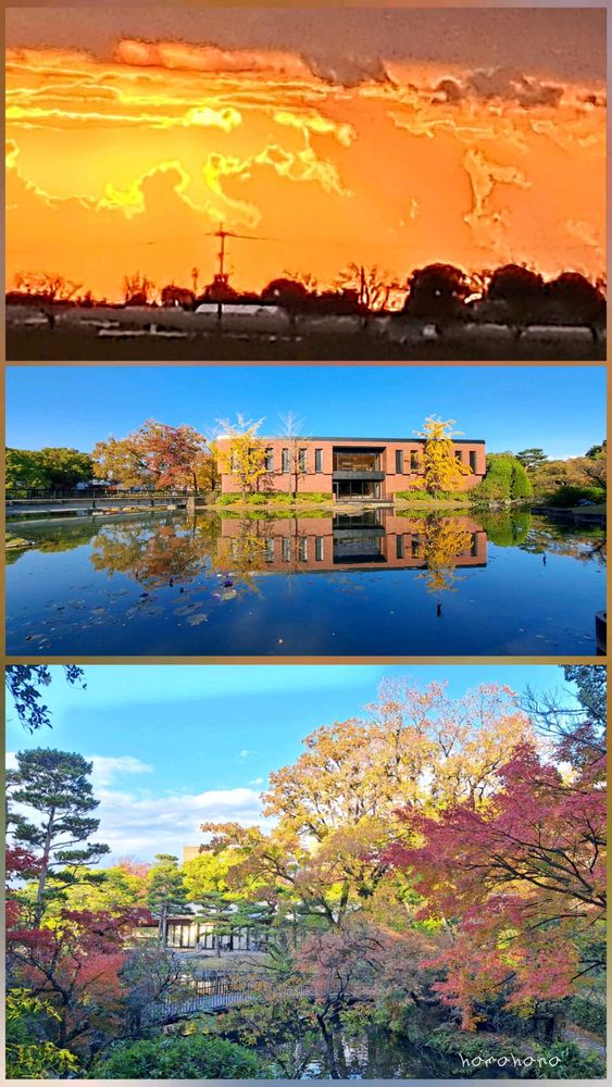 夕日や紅葉も綺麗ですが水面に映った石橋文化センターが外国の建物みたいで綺麗ですね🤎🩵🤎🩵