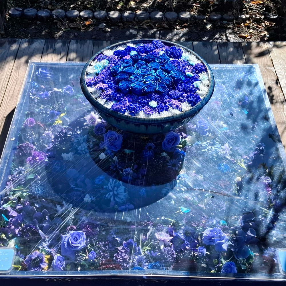 私には作れない💙花手水です