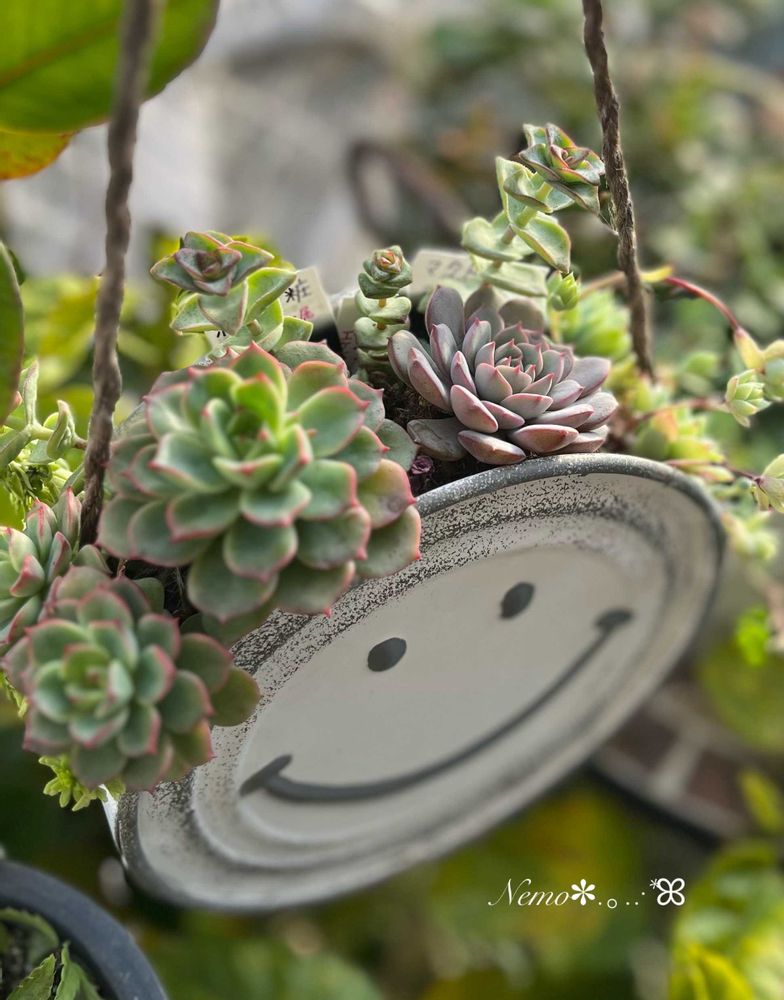外に掛けっぱなしのニコちゃん鉢をハウスに入れてあげました💕