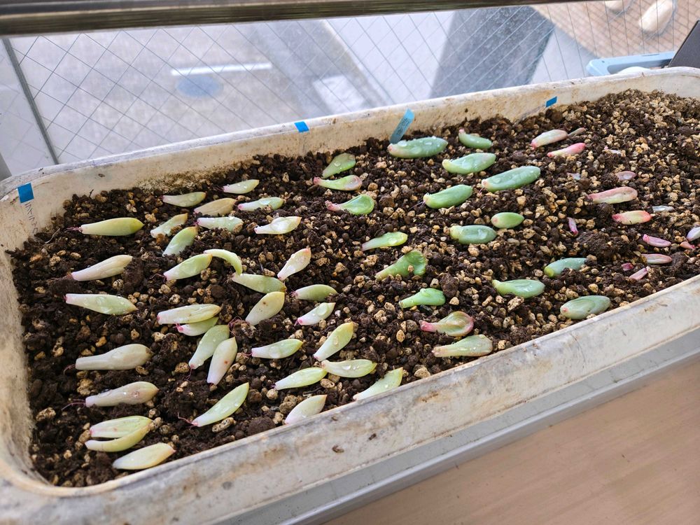 来年のバザーの準備,もう始まってるんですね🤗沢山、葉挿し,可愛い💕芽が🌱出てますね🥰