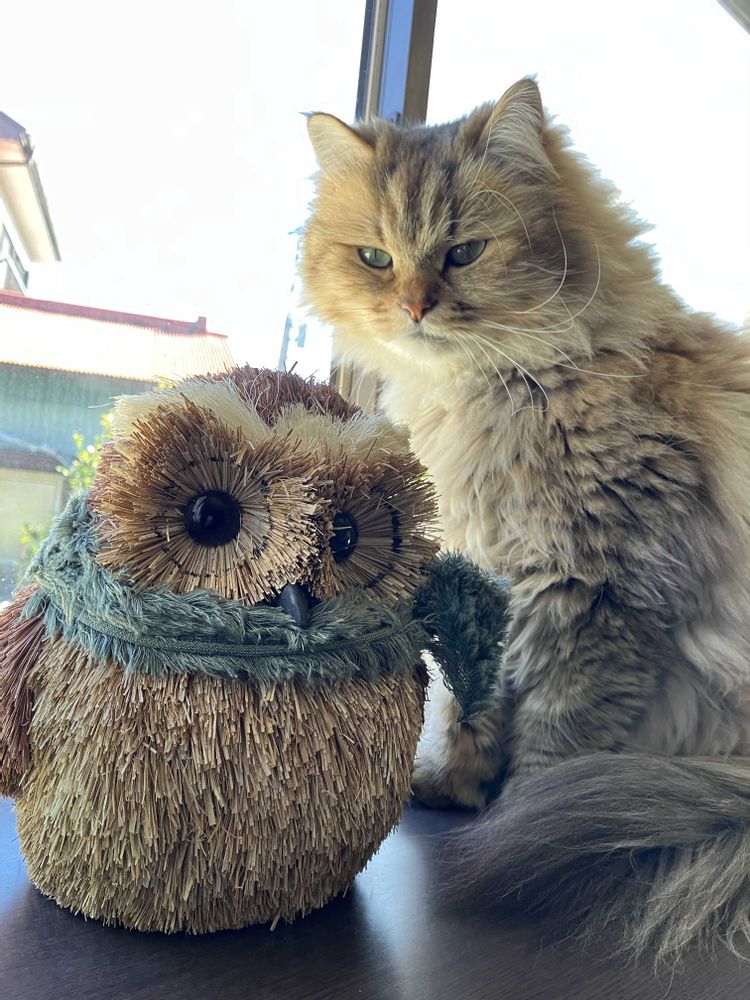 ミールンちゃんからの🎁の立派な🦉さんとてんちゃん🐈