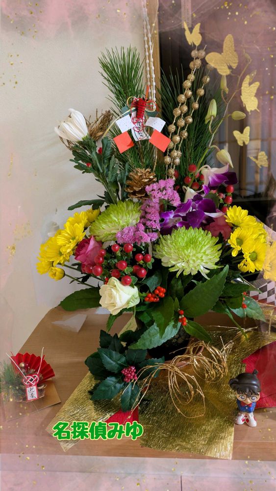 アレンジしたお花💐とっても豪華ですね🧚コナン君も華を添えて😄🎇💐