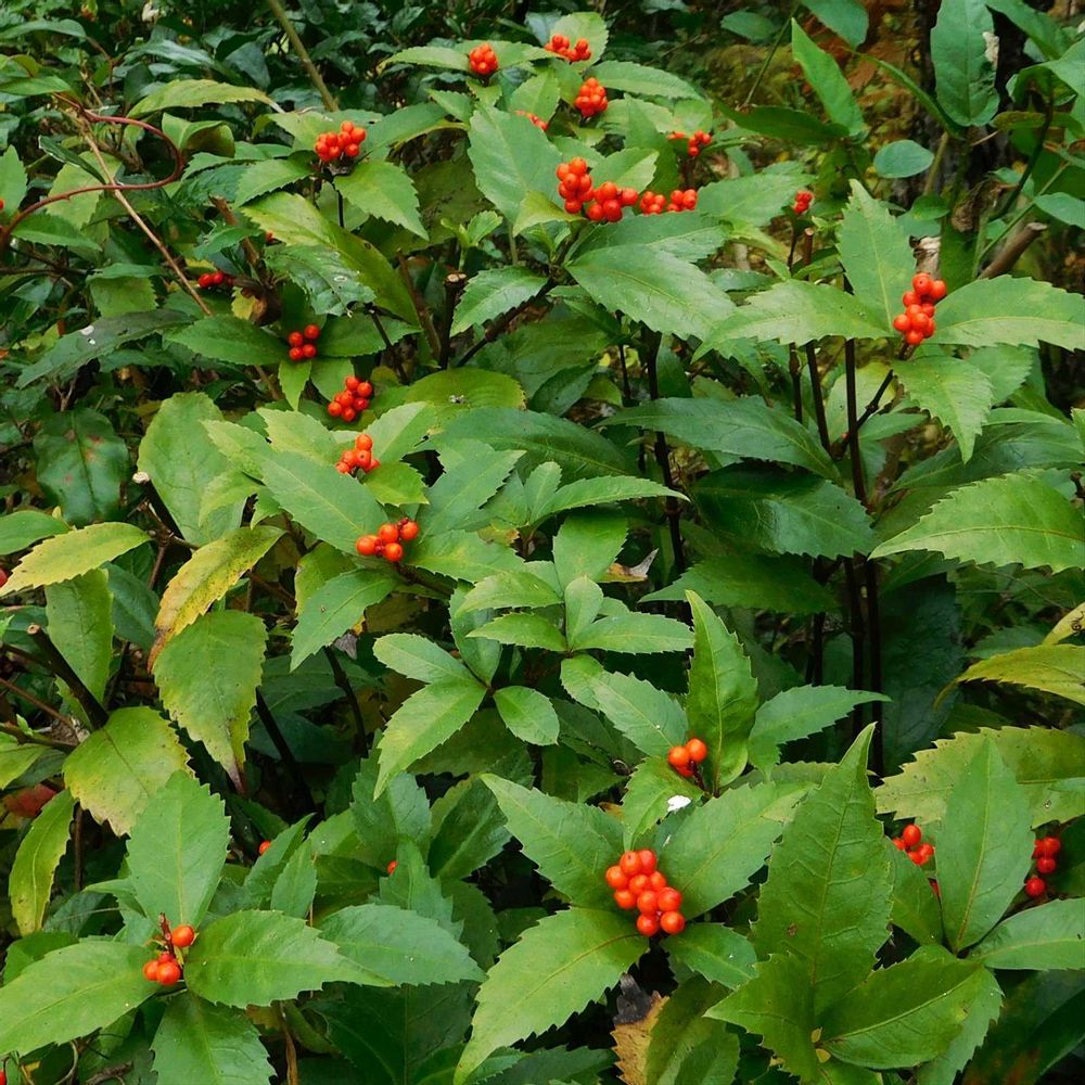 あちらこちらで、センリョウの赤い実🔴がよく見られます🎶