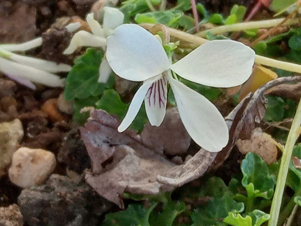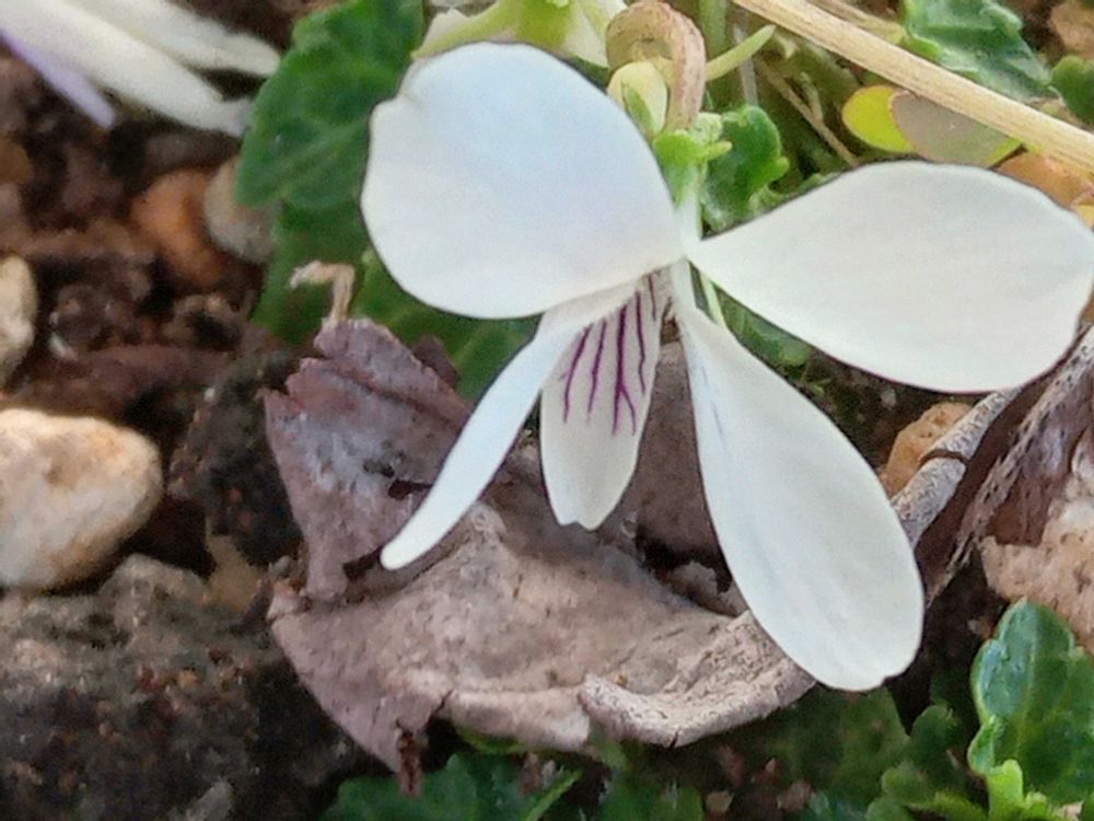 寒さのなかで健気に咲いているスミレ🤍に👏