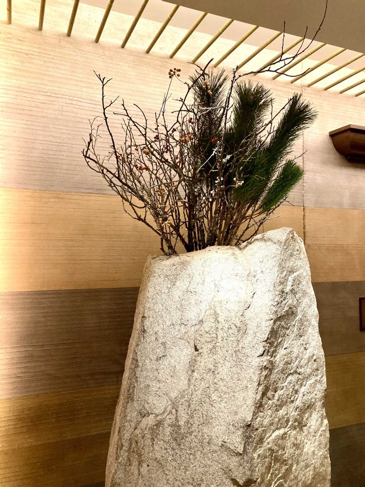 地下鉄連絡通路入口には松が生けてあった。