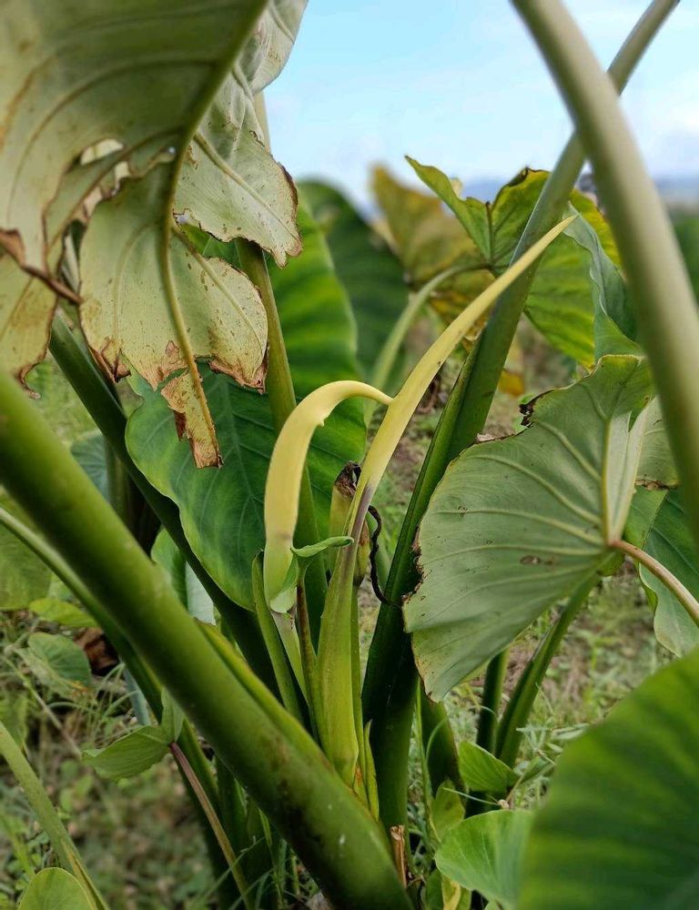 里芋のお花は見たことないのですが、この黄緑色の細長いものがお花なのですか?