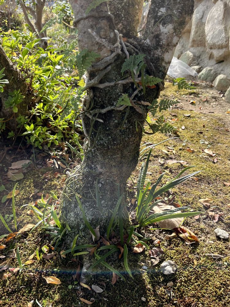 苔むして万両やオモト シノブ ノキシノブなどが生えています