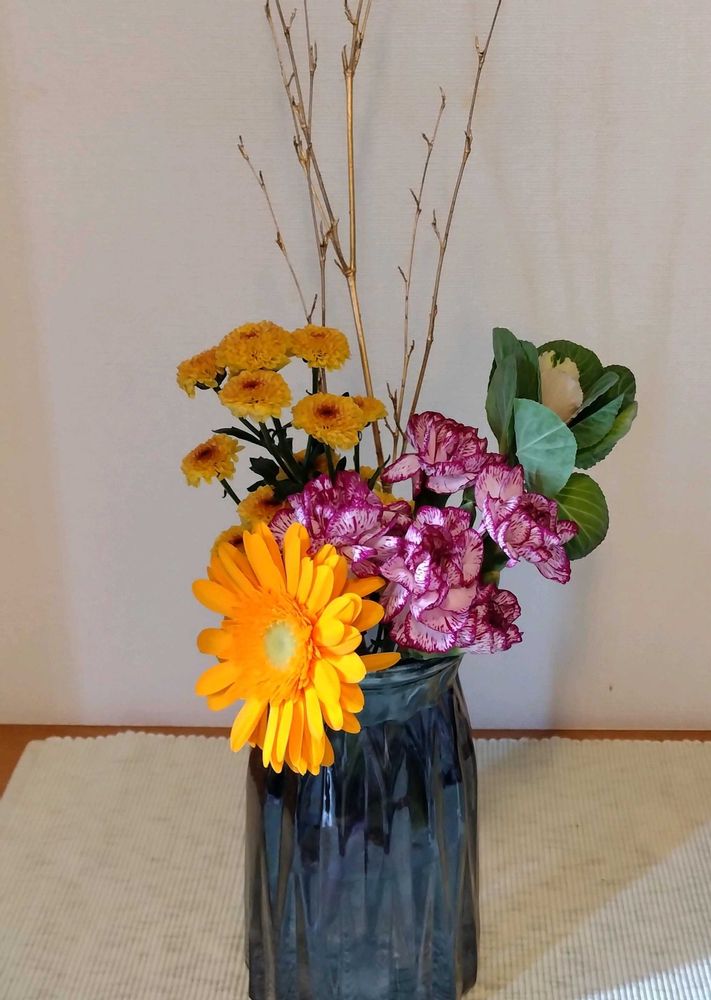 行きつけのお花屋さん覗いたら、お手頃なブーケがあったので一応お正月っぽくしましま(笑)