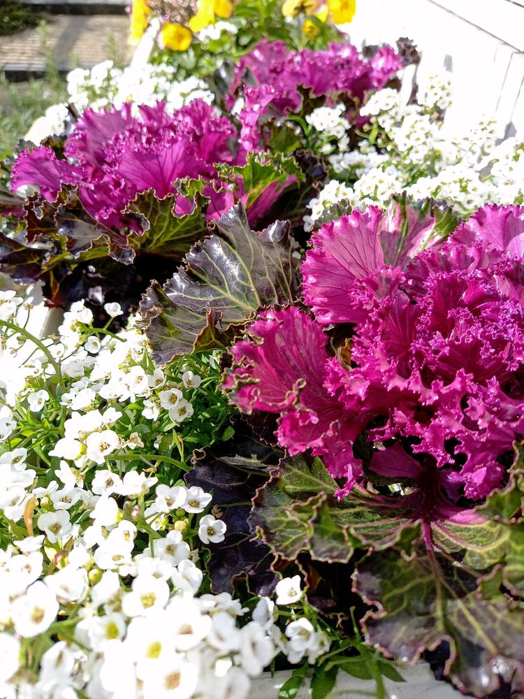 葉牡丹の華やぎとアリッサムのしおらしさ、素敵ですね💖