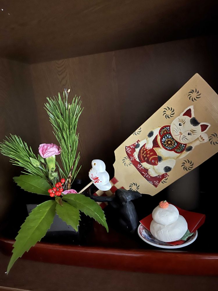 シューズボックス棚にも、お正月の飾りを。これも毎年同じ感じです。