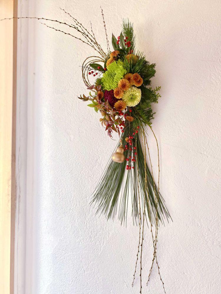 アーティシャルフラワーばかりのしめ縄飾りばかりだったので生花でも1つ、しめ縄飾り作りました🎍