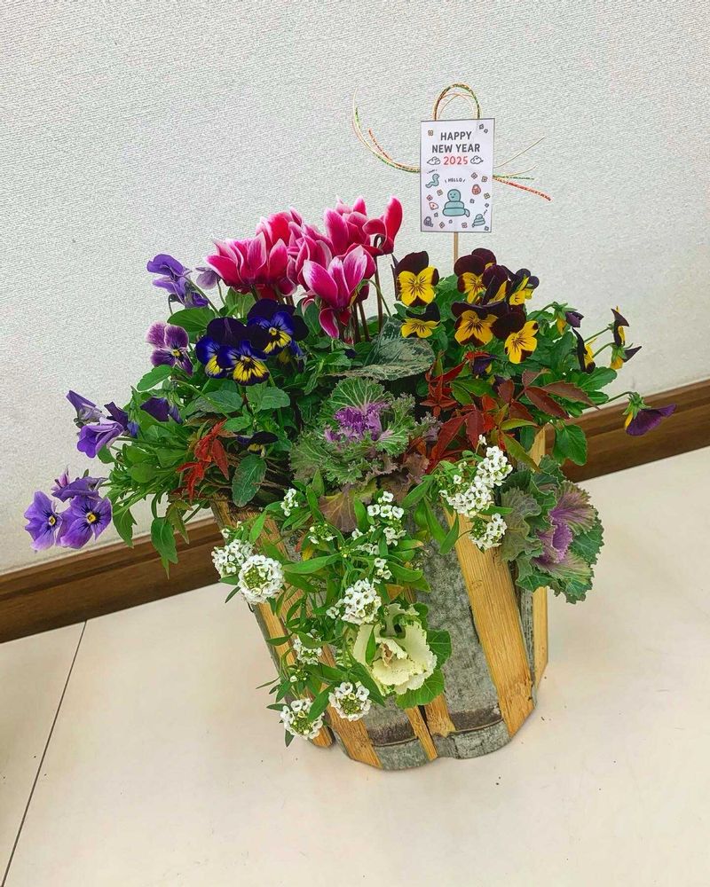 皆さん新たな年を自分で作った寄植えで迎えて頂こうと授業させていただきました。今回で熊本カルチャー様でのレッスンは建物老朽化による立替の為閉校いたします。約4年ほど多くの生徒様と交流が出来て大変幸せでした。スタッフの方々にも大変お世話になりましたm(__)m 引き続き場所はお店でのレッスンになりますのでよろしくお願い致しますm(__)m