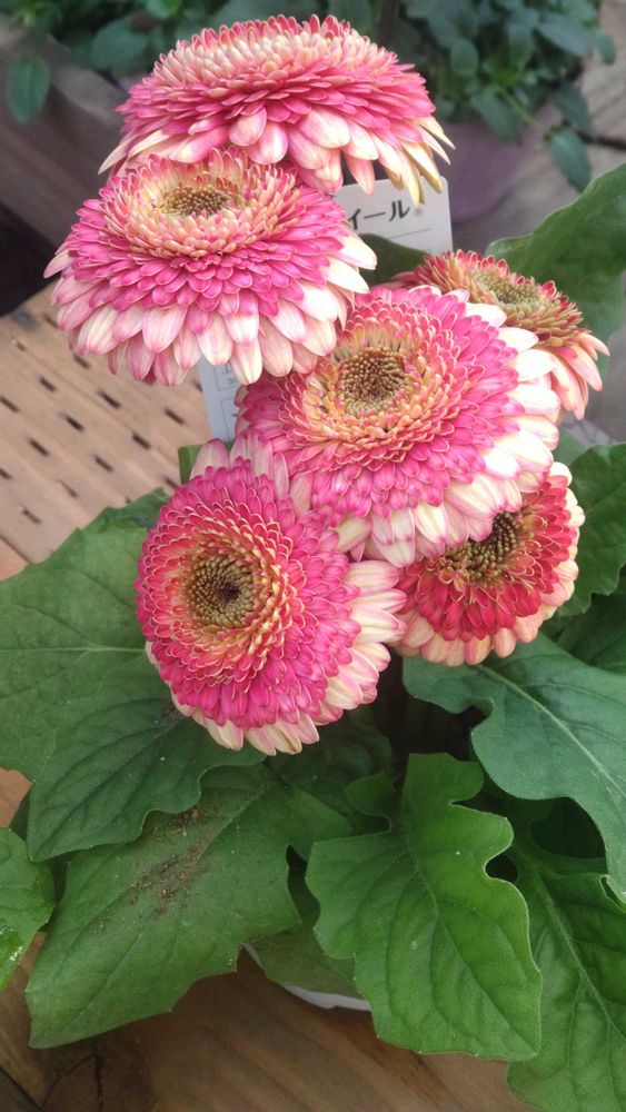 園芸コーナーで出会った カートホイールは 大輪で八重咲きのガーベラです。