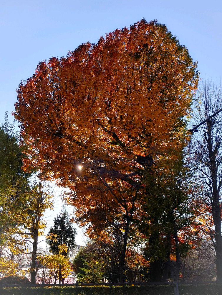 夕暮れどきのモミジバフウの巨木。なんとなく行く年への寂しさが重なった1枚です🤔