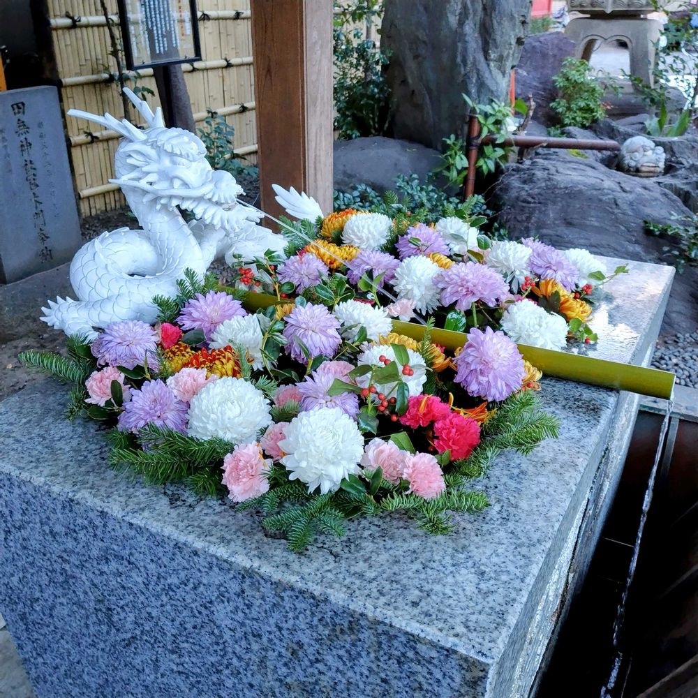 花友さんの昨日の田無神社の花手水の投稿を拝見し私も日の出直後にジョギング🏃と合わせて様子見&お参りに⛩️