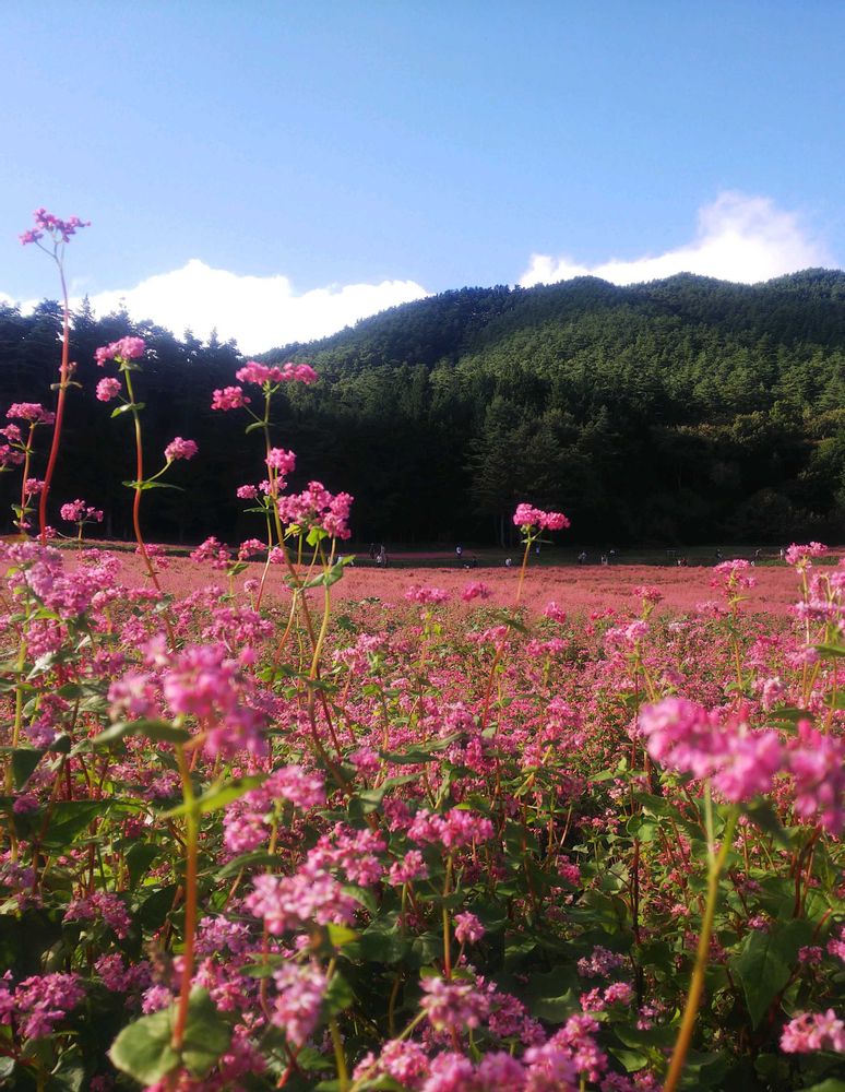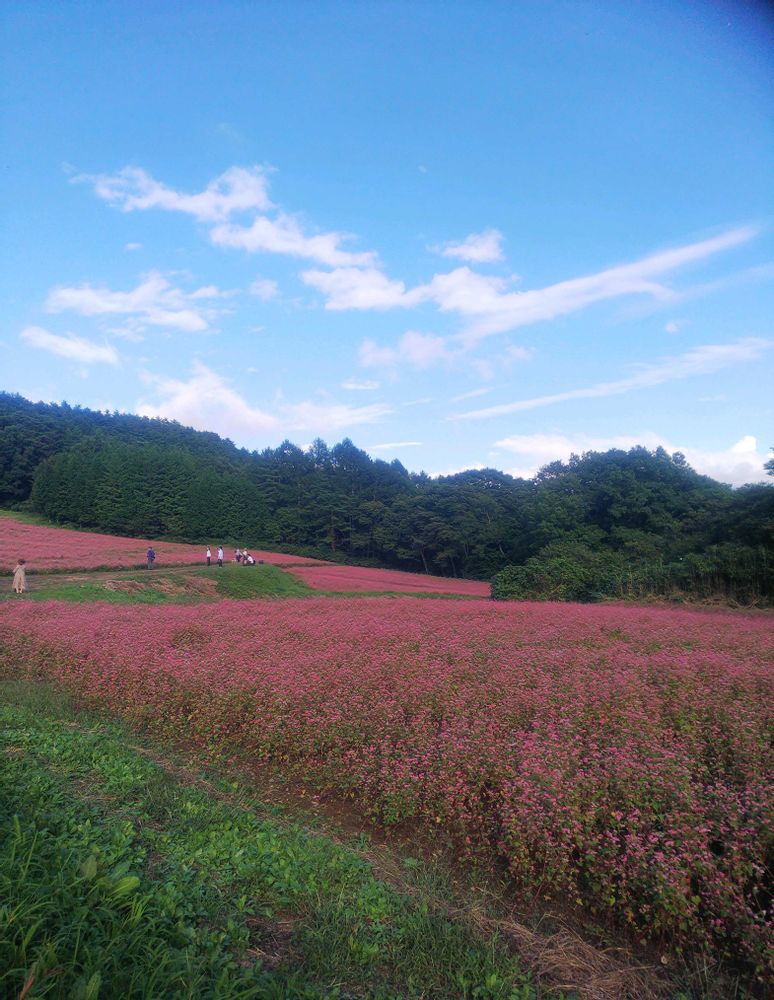 初めて見た一面ピンクのそばの花🩷