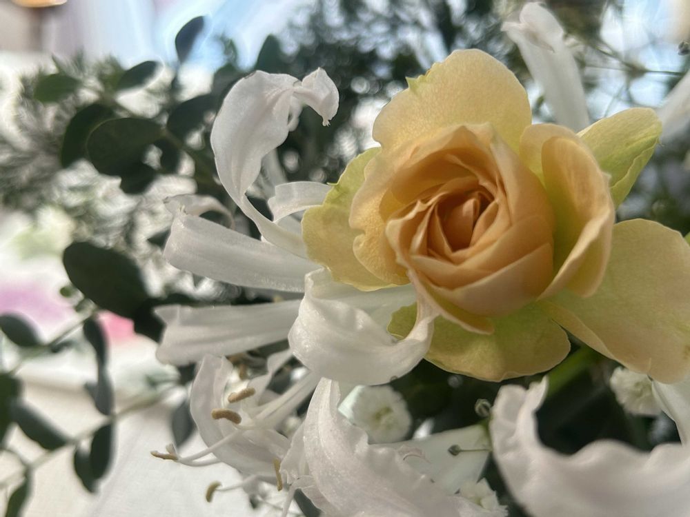 切り花にしてから1週間以上咲き続けてくれてるネリネとアンテークレースの薔薇です♪