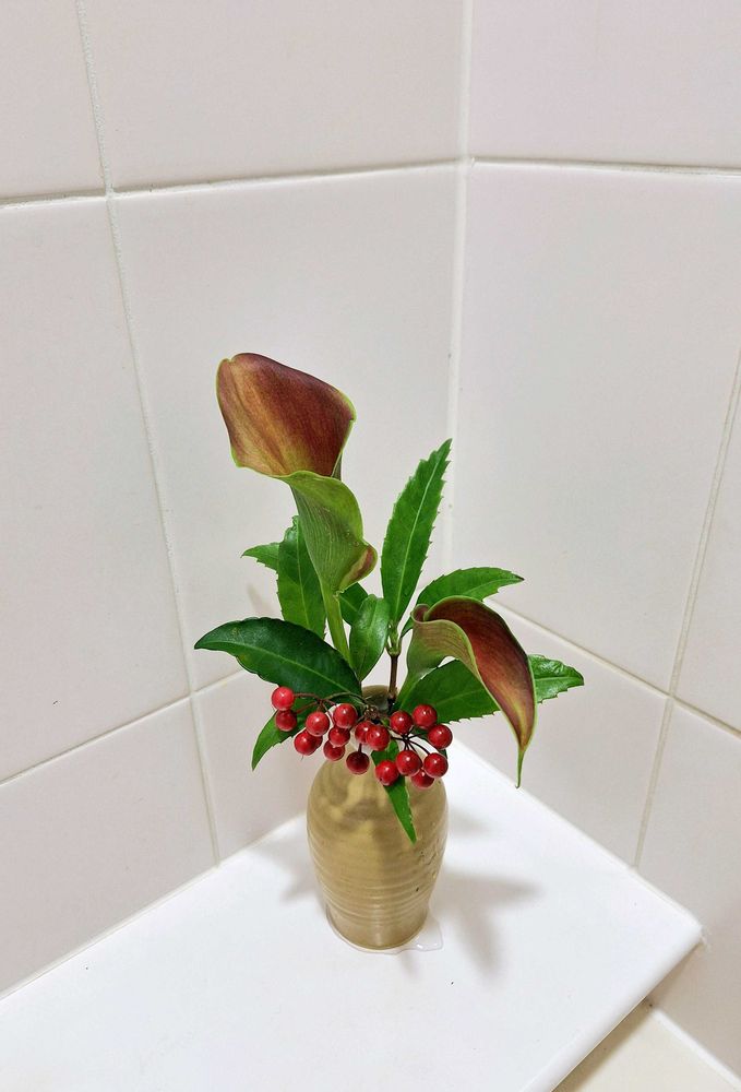 私のは流派に拘らない自由花ですが、前職場で20年以上勝手に生けていて、段々自分の形ができてきました😊
